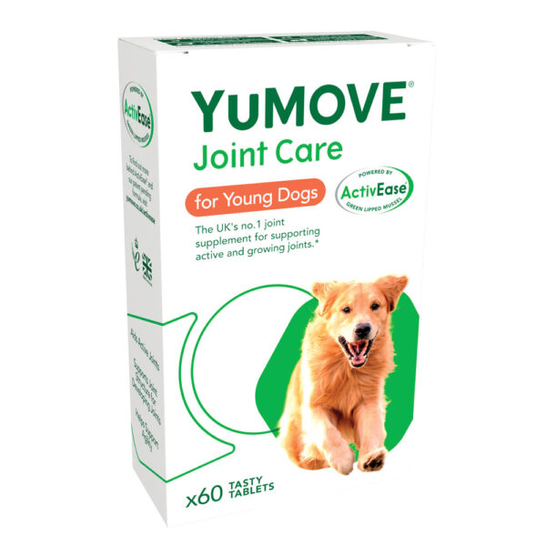 A YuMOVE Young & Active prémium minőségű, természetes táplálékkiegészítő kutyák számára. Támogatja az aktív és fejlődésben lévő ízületeket – tökéletes kölyökkutyák, fiatalabb felnőtt és sportoló kutyák részére. Extra antioxidánsokkal és a magas minőségű ActivEaseTM zöld kagyló kivonattal kiegészítve, ez egy egyedülálló prémium formula, amely hozzájárul a sportolás utáni feltöltődéshez, a növekvő ízületek rugalmasságához, valamint, hogy a sportoló kutyák ízületei formábban maradjanak a lehető leghosszabb ideig.